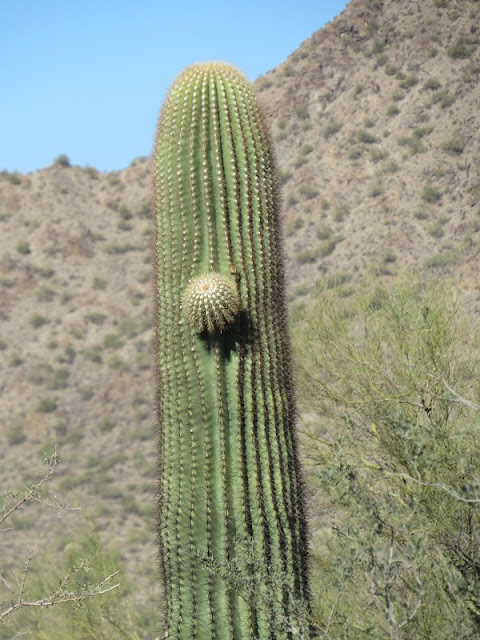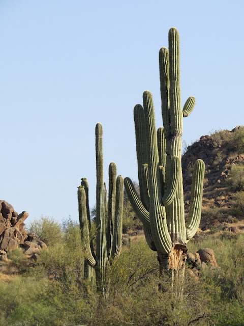 I have read in more than one source that the saguaro does not grow any arms until it is about 70 years old. So these guys are roughly my own age.